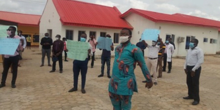 Association of Resident Doctors (ARD) at the University of Medical Sciences (UNIMED) Teaching Hospital Ondo, on Friday staged a peaceful protest over non-payment of five-month salaries