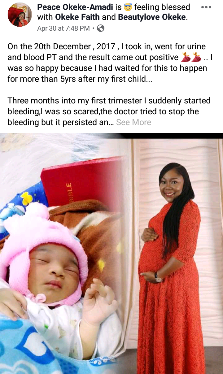 According to Peace, who waited for 5 years to get pregnant after the birth of her first child, her pregnancy took a different dimension, as she experienced consistent bleeding and during those months she waited to give birth to her baby, many claimed her sin kept her in the condition she was in. Others also alleged that her pregnancy is a scam and that she was mocking God.