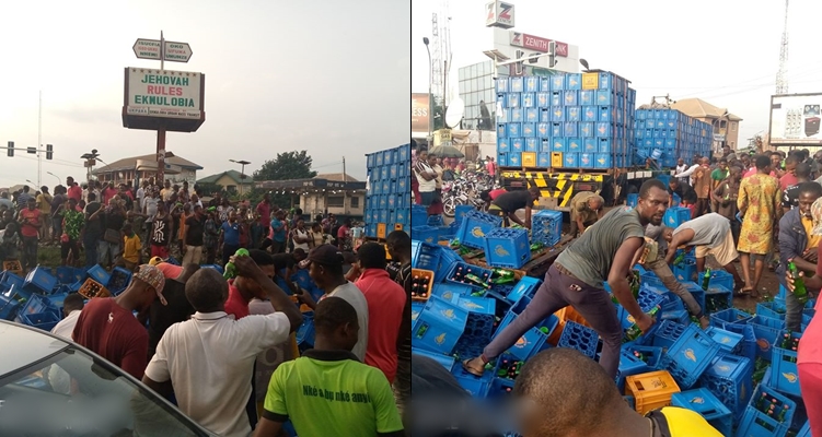The incident which led to lost of millions of naira, was seen as an opportunity by the residents of the community to drink as many bottles of beer as possible.