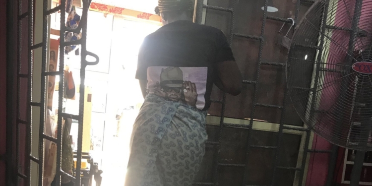 A photo of the pregnant woman hiding in her shop was shared by the Twitter user and she also narrated what transpired between the pregnant woman and her husband.