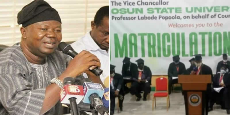 The virtual matriculation organised by the Vice-Chancellor of Osun State University, Professor Labode Popoola has been described as a scam by The Academic Staff Union of Universities (ASUU) on Saturday.