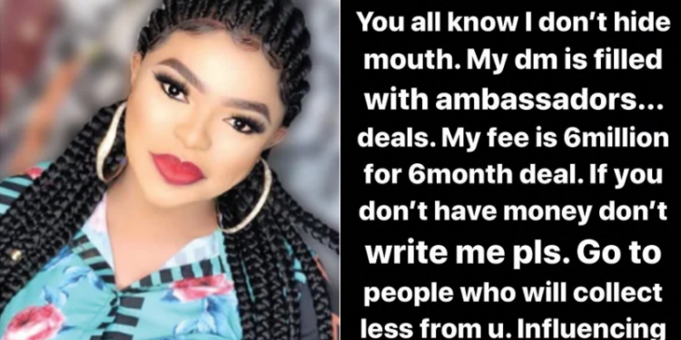 Popular controversial Nigerian cross-dresser, Idris Okuneye Olorunwaje, also known as Bobrisky has taken to social media to reveal the shocking amount of money he charges for ambassadorial deals.