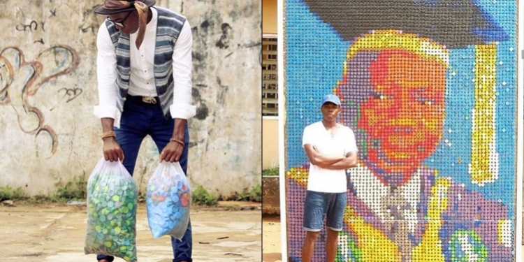 Joshua Egesi, a student of the University of Benin, Nigeria has amazed many with the unbelievable display of his talent after creating what can be considered to be the biggest bottle cap potrait in Africa.