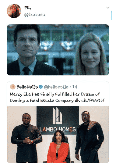It all started after FK Abudu used Ozark’s Marty Byrde and his wife Wendy’s photo to insinuate that Mercy’s newly launched real estate company was opened for the purpose of money laundering.