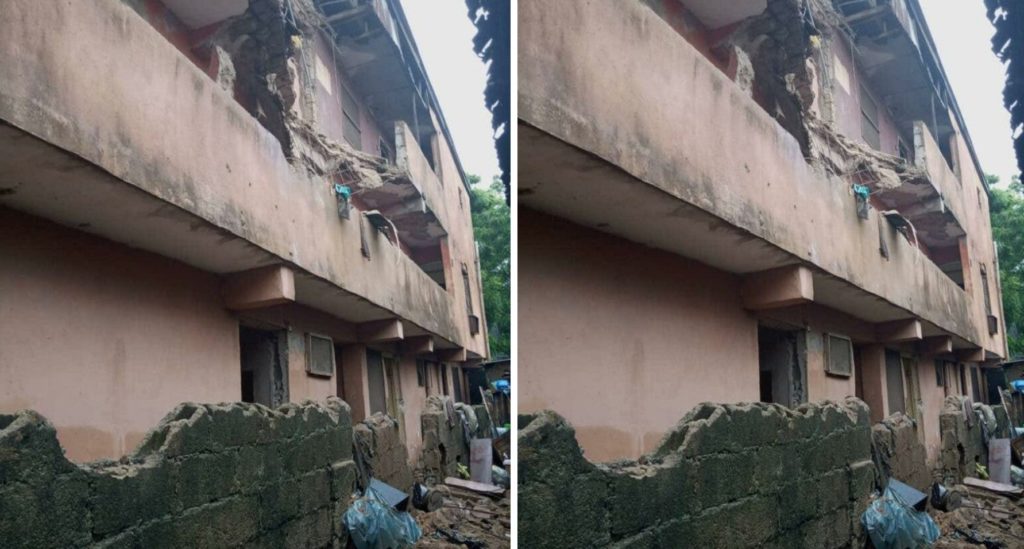 It was gathered that the incident, which occurred around 9.45 am amid heavy downpour left parts of the building destroyed.