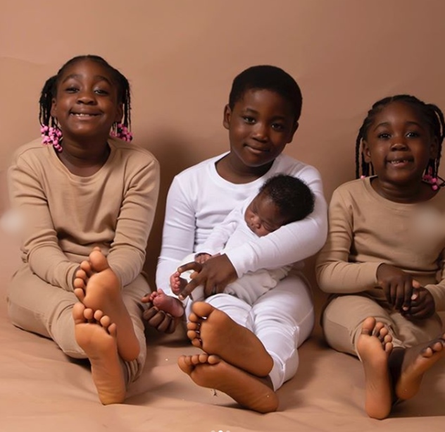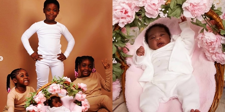 As children all over the world celebrate Children’s Day, Mercy Johnson-Okojie has taken to shared adorable photos of her children, in what she called the ‘full Okojie squad including her fourth child, Divine-Mercy, whom she welcomed with her hubby, Prince Odi Okojie, on May 4.