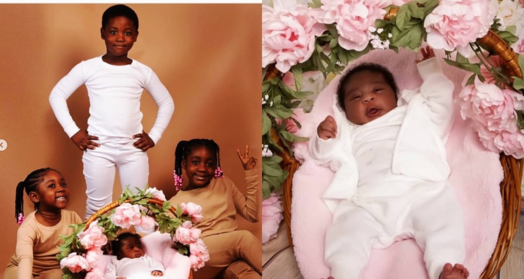 As children all over the world celebrate Children’s Day, Mercy Johnson-Okojie has taken to shared adorable photos of her children, in what she called the ‘full Okojie squad including her fourth child, Divine-Mercy, whom she welcomed with her hubby, Prince Odi Okojie, on May 4.