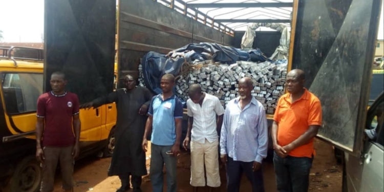 According to report, products belong to Lloyd Industries Limited Sango Ota in Ogun State, and was loaded in a Mac Truck with Registration No. KRD 771XX driven by one Suleiman Abdulkareem aged forty years and a native of Ibarakpa Local Government Area of Oyo state who was alleged to have conspired with five others and trans-loaded the goods in two Styr Trucks with registration numbers ABH389XA and UGH434XR.