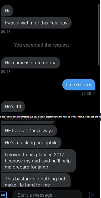 Some screenshots from alleged victims of the assault were shared on the social media platform, and many of them, aged 15-17, alleged that the man is fond of discussing porn with them and even tells his victims of his sexual escapades with his wife.