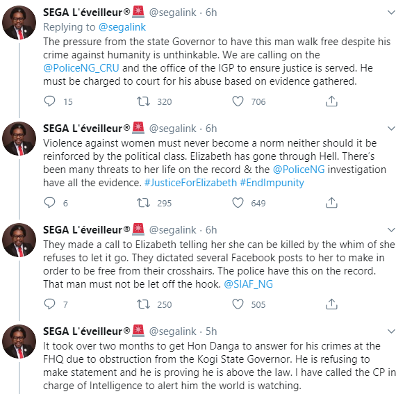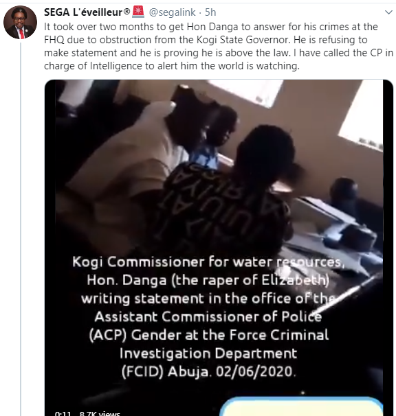 Sega added that, “It took over two months to get Hon Danga to answer for his crimes at the FHQ due to obstruction from the Kogi State Governor.”