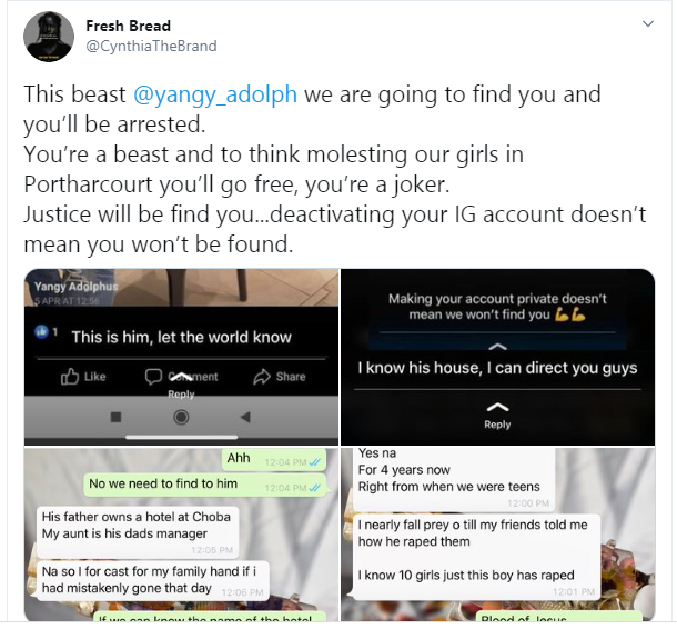 This trouble started for the Babcock student after a Twitter user @caramelangiee shared screenshots of a direct message she got from one of his abusers.