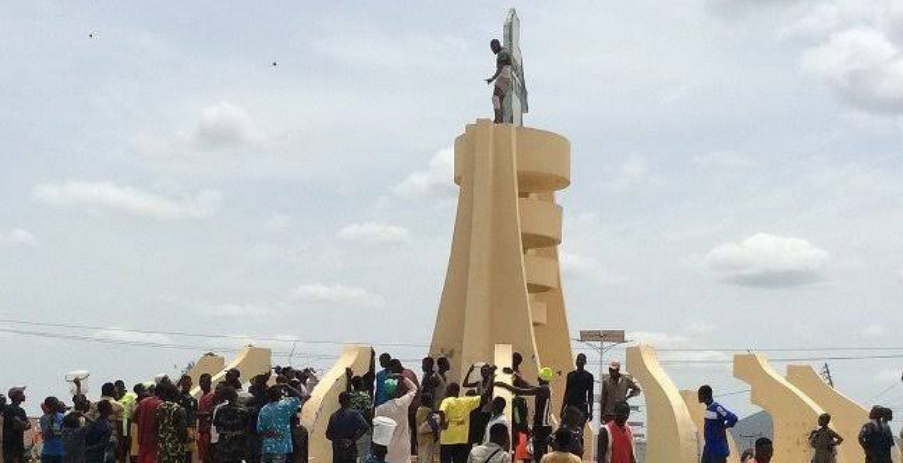 He is speaking in Hausa and pidgin, saying: “I want to die. Allow me to jump down and die.” But the youth who have gathered there are begging him: “Please do not jump. We don’t want you to die.”