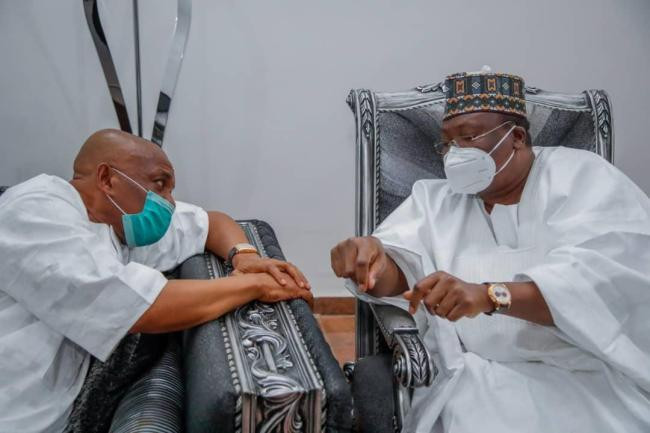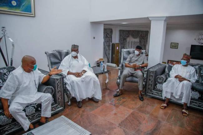 Days after former Governor of Abia state was released from prison, senate president Ahmad Lawan and others senators paid a courtesy visit to the Abia-born lawmaker, Orji Uzor Kalu on Thursday, June 4.