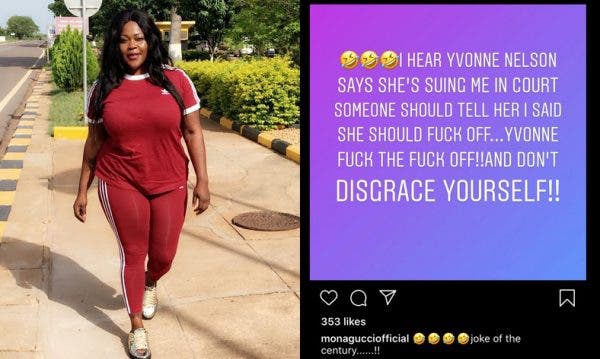 It all started weeks back, while Mona Gucci was speaking to Ola Micheal on Neat FM she named some female celebrities as gold diggers and Yvonne Nelson was mentioned. She classified the actress as a slay queen who ‘whores for living.’