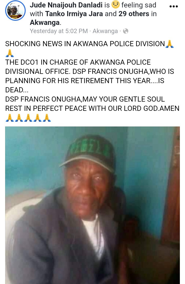 Tragedy as Divisional Crime Officer (DCO) 1 attached to Akwanga Division of the Nigeria Police Force, Nasarawa State Police Command, DSP Francis Onugha popularly known as Dangote reportedly died under mysterious circumstances.