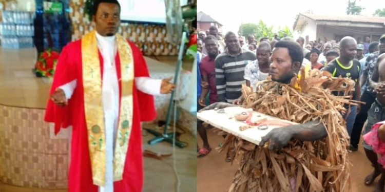 The source stressed that the pastor was traced and caught redhanded with some fetish stuffs at a shrine in Itigidi after a resident of the community saw him planting the said charm in the land.