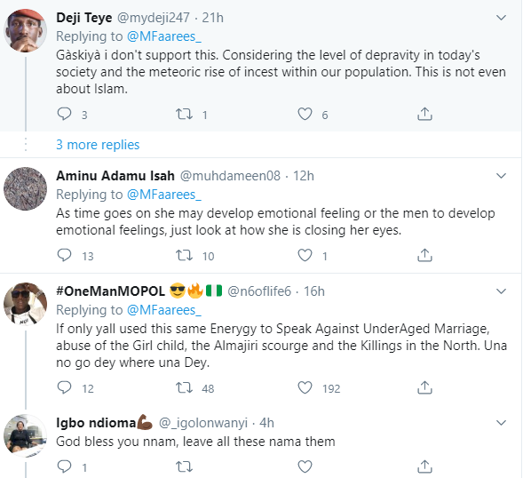 Another wrote: “Gàskiyà i don’t support this. Considering the level of depravity in today’s society and the meteoric rise of incest within our population. This is not even about Islam.”