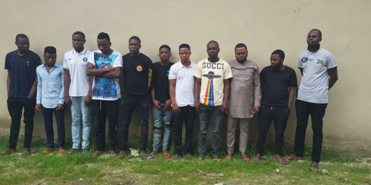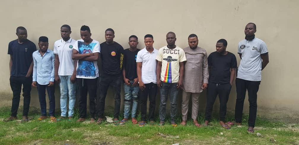 Those arrested at Victoria Island in Lagos State were Onothebor Edmond, Suuru Blessing, Ifedapo Opeyemi, Samson Samuel, Oguntade Idowu, Emmanuel Akinyemi, Seyi Kazeem, Sulaiman Taoheed, Oduwale Oluwasesan, Adewoye Oluwasesan and Alex Abiodun.