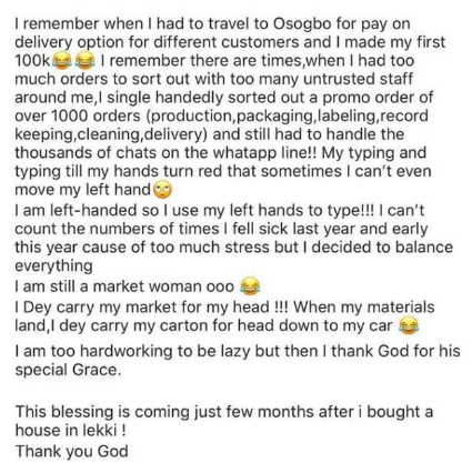 It appears the business of aphrodisiacs, popularly known as Kayan mata is booming in Nigeria as a popular seller has taken to social media to reveal how she worked hard to become the person she is today.