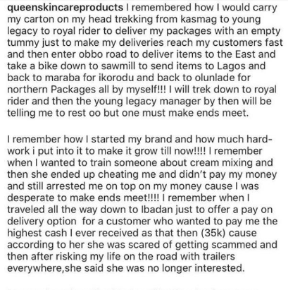She also recounted how she had to make deliveries to her customers with an empty stomach, just to make ends meet.