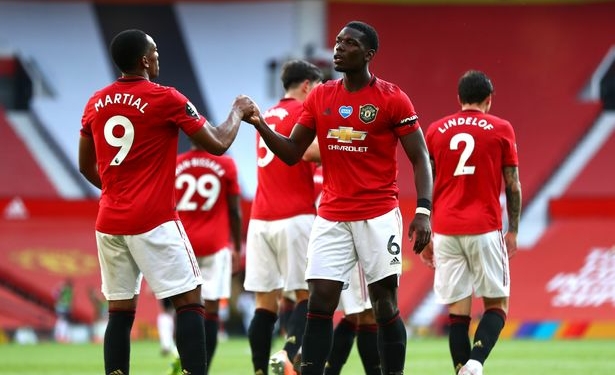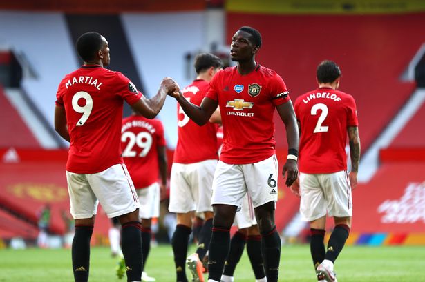 For this first home game of the restart the manager selected close to United’s strongest side with only Scott McTominay missing: he was rested, Nemanja Matic coming in. This meant Paul Pogba broke a 10-month wait for a league start and was paired in the starting XI with the effervescent Bruno Fernandes for a first time.