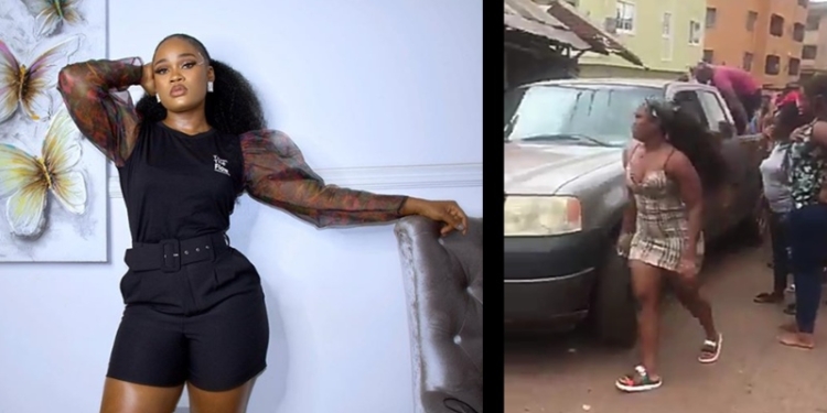 In a video circulating on social media, the lawyer and media personality was seen panicking and walking distressed to the damaged side of the car where she nearly fell into a gutter, and also loud voices from eyewitnesses and helpers could be heard in the background, trying to proffer solution to the situation.