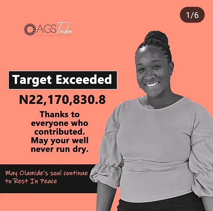 A trust fund was set up by Accessing Grants for Startups better known as AGS Tribe, a community for entrepreneurs that Olamide belonged to before her death.