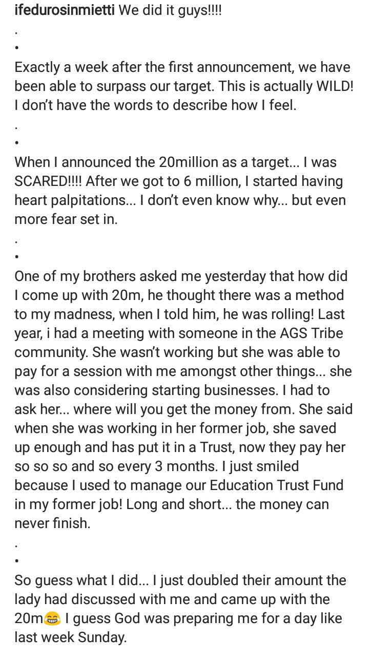 Exactly a week after the community first announced the Trust Fund, AGS Tribe has now announced that it has exceeded the set target, raising over N22million.