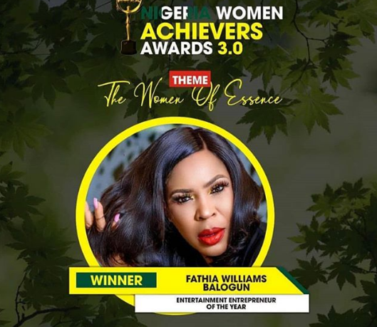 Reacting to this big win, 51 year old, Faithia williams who won the entertainment entrepreneur for the year 2020, took to her official Instagram page to announce the good news. As expected, congratulatory messages have been falling in place for the ageless beauty.