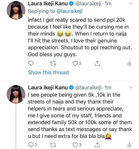 Infact I get really scared to send ppl 20k because I feel like they’ll be cursing me in their minds. When I return to naija I’ll hit the streets, I love their genuine appreciation. Shoutout to ppl reaching out. God bless you guys