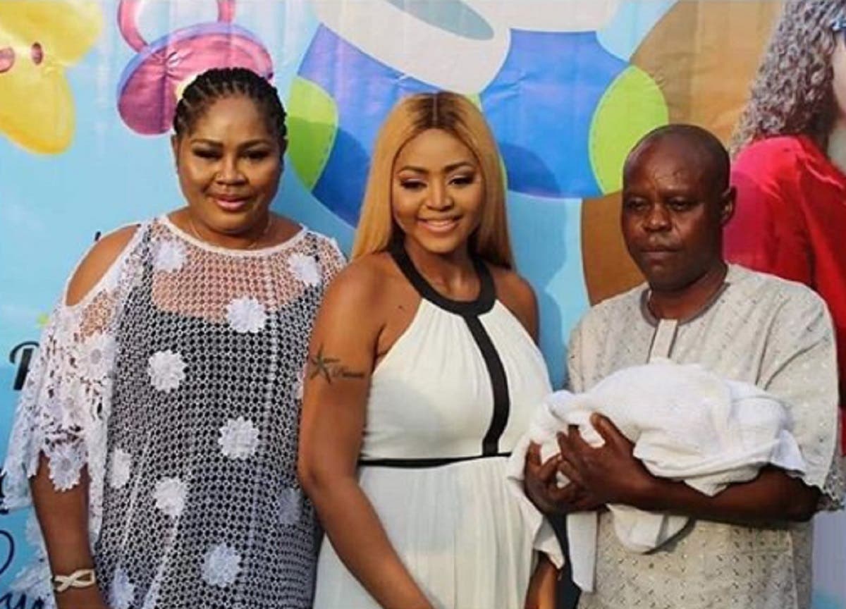 However, he made a surprise appearance on Friday at the naming ceremony of Regina’s baby boy – Munir – in Abuja.