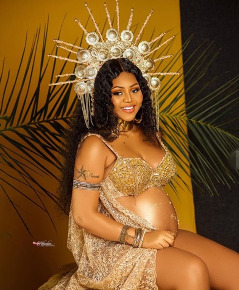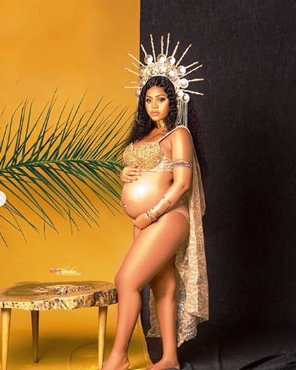 Proud mom and actress, Regina Daniels who recently gave birth to a bouncing baby boy has shared some semi-nude photos from her maternity shoot.