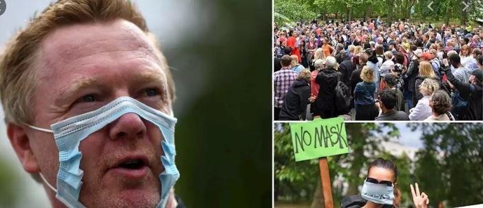 WITHIN NIGERIA learnt that the protest countered an announcement released by the UK government that masks must be worn in shops and supermarkets from Friday.