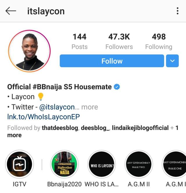 Fans of Big Brother Naija housemate, Laycon are currently setting Instagram on fire as their fave, Laycon becomes first housemate to be verified by instagram.