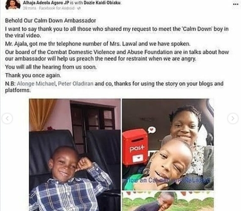 The Facebook user who shared the video made the announcement, saying; “Behold Our Calm Down Ambassador
