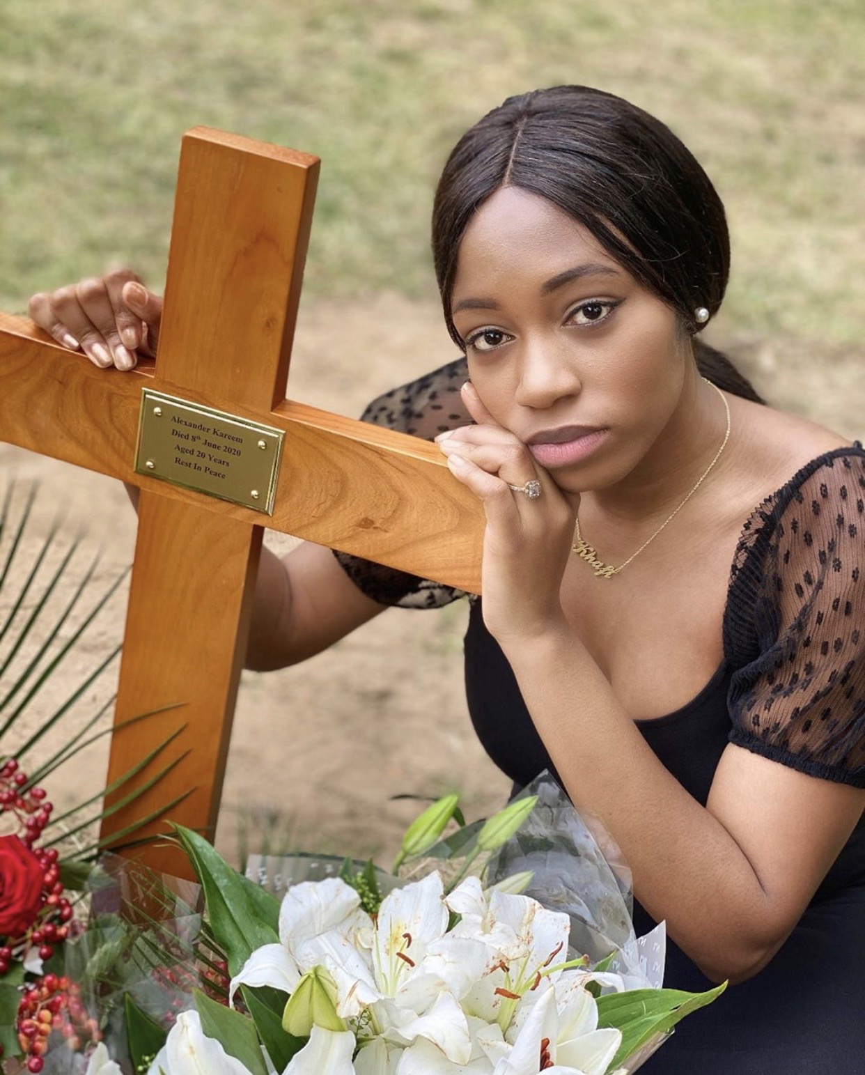 Khafi posted a picture of herself beside his grave on Wednesday. She wrote;