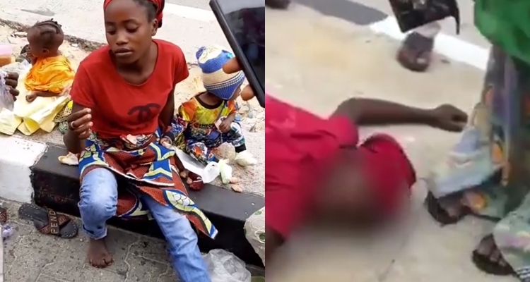 Recall that earlier on, a viral video showed moments an eye witness who spoke in Pidgin English, claimed that a female beggar challenged a male beggar for looking at her while she was easing herself, they both got into an argument and in retaliation to the accusation, the male beggar hit what the witness described as a plank on her head! The female beggar who appeared to be unconscious or probably dead laid on the ground without moving any part of her body.