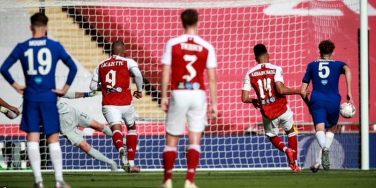 The Gabon forward drew Arsenal level from the penalty spot before the break after he was fouled by Chelsea captain Cesar Azpilicueta, then produced a moment of world-class finishing to make the defining contribution to the first behind-closed-doors FA Cup final.