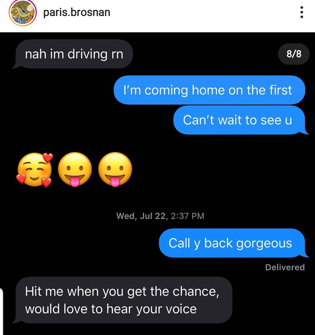 Amerian-Irish actor Pierce Brosnan’s son Paris Brosnan who confirmed the incident, shared photos and screenshots of old messages between himself and 19-year-old Breaux with the caption;