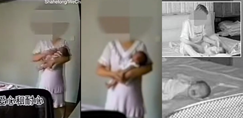 The footage was recorded in the parents’ home in the city of Shahe in northern China’s Hebei province.