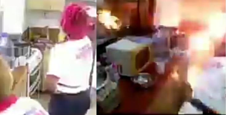 In the video shared, two female housemates could be seen in the kitchen tidying up some things. After a few seconds, one of the girls left the kitchen and suddenly, there was a gas explosion.
