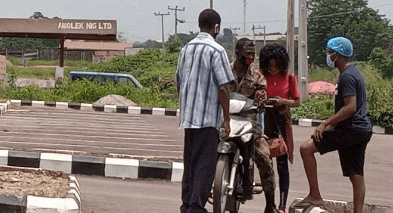 According to TheCable, the pastor approached the soldier but after about five minutes of discussion, the lady was taken away on the motorcycle while her father left the centre in annoyance.