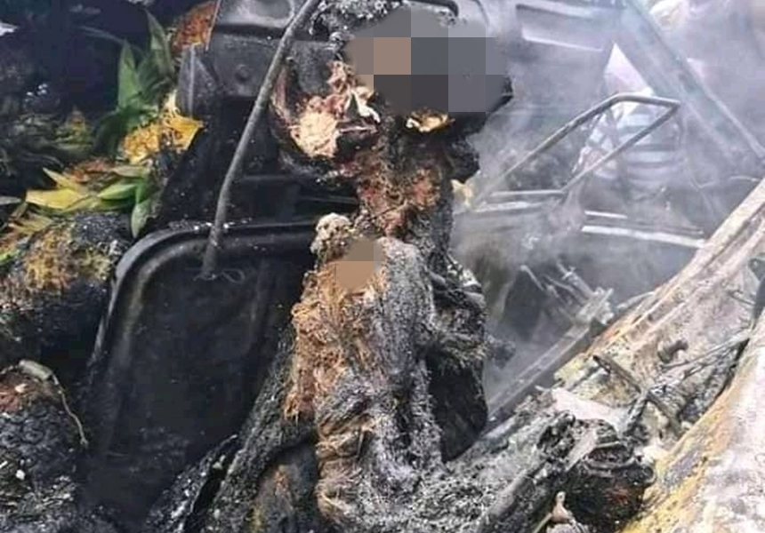 According to eye witnesses two persons died in the sad incident with one burnt beyond recognition.