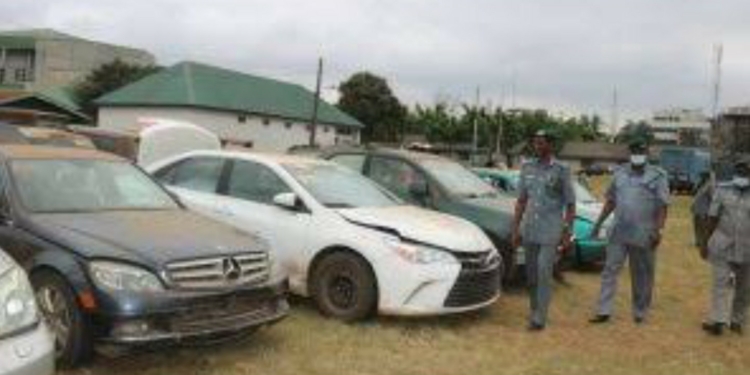 “The contrabands include 34 different brands of both new and used vehicles laden with banned items such as second hand clothes, foreign parboiled rice and Indian hemp