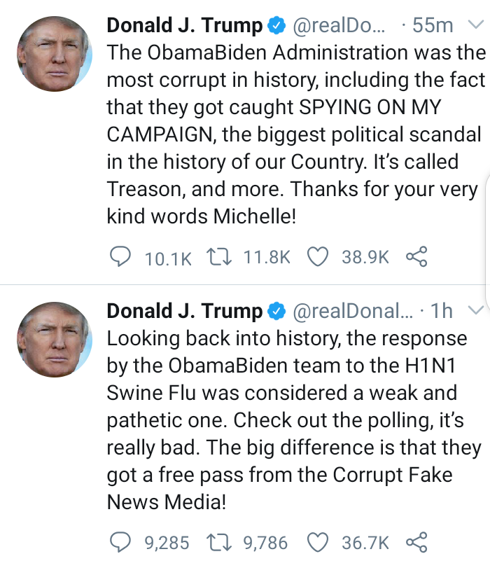 Trump then claimed that the Obama administration’s response to the 2009 H1N1 pandemic was viewed as “weak and pathetic.”