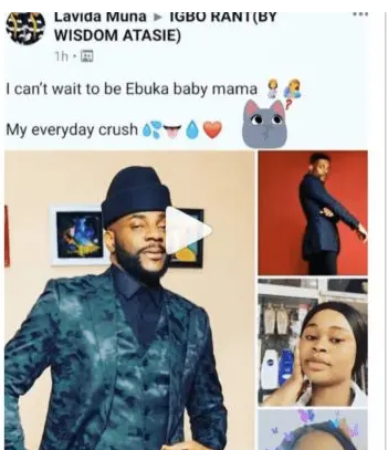 Lavida Muna took to social media platform, Facebook to reveal that the host and former housemate of Big Brother Nigeria (BBNaija) reality TV show is her crush.