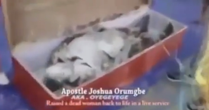 A woman was spotted in a casket with whitish substance on her face as the Pastor prayed. Some members of the church were also spotted singing in the background before the woman who was being prayed for, leaped out of the casket.