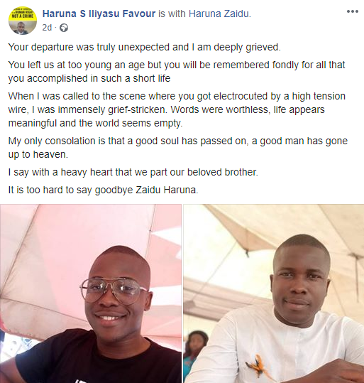 According to reports, a mobile phone repairer, Junaudu Shaibu was about to pick up his tools when he was electrocuted by a nearby high tension wire. Zaidu had tried to rescue Shaibu when he got electrocuted as well.