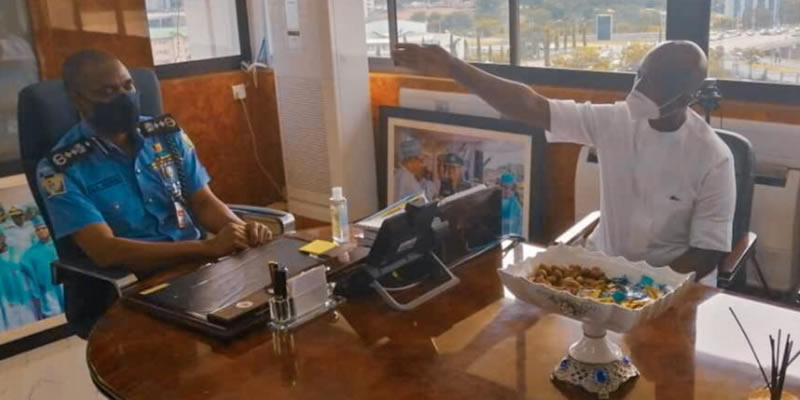 File Photo: IGP Mohammed Adamu and Ned Nwoko in the Police Boss' office to support NPF with free installation of CCTV cameras in Abuja.