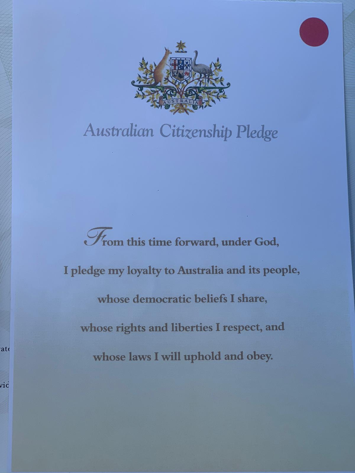 Starger Montana swore to be faithful to the Australians and the Law of the country. The certificate also read that Starger Montana would be loyal and respect the Australians and it’s rights.